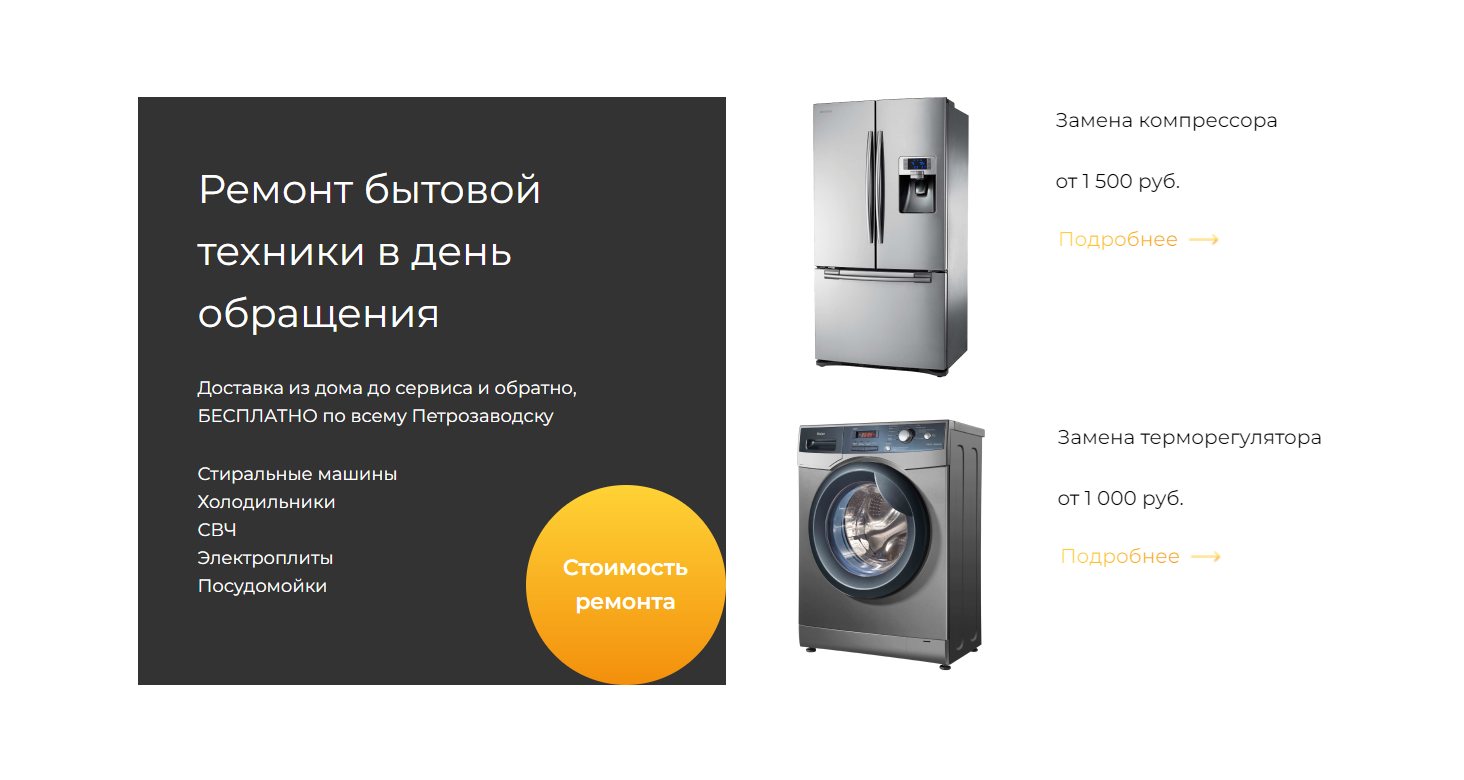 1. Заголовок Пример: срочный ремонт бытовой техники в Петрозаводске