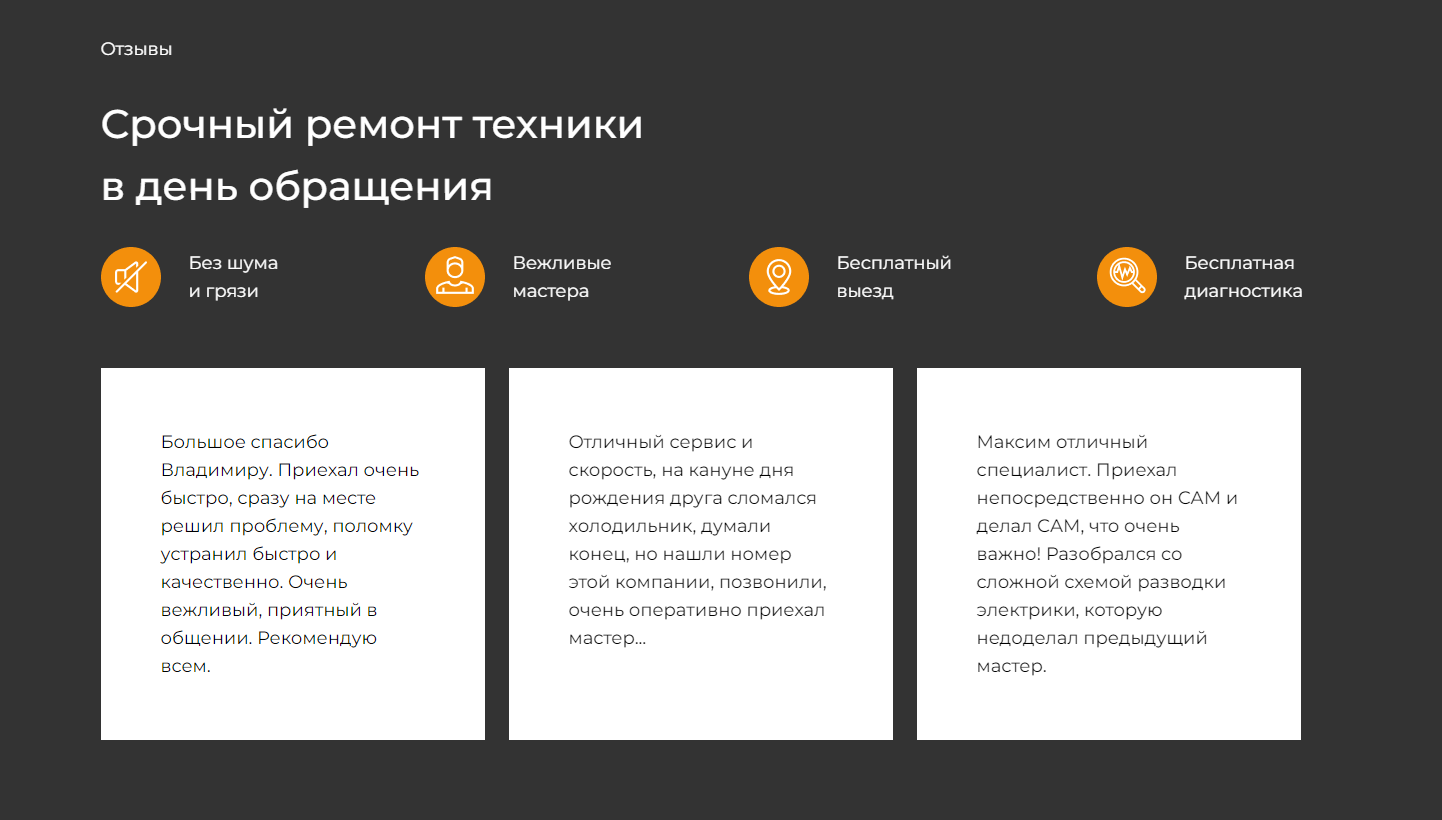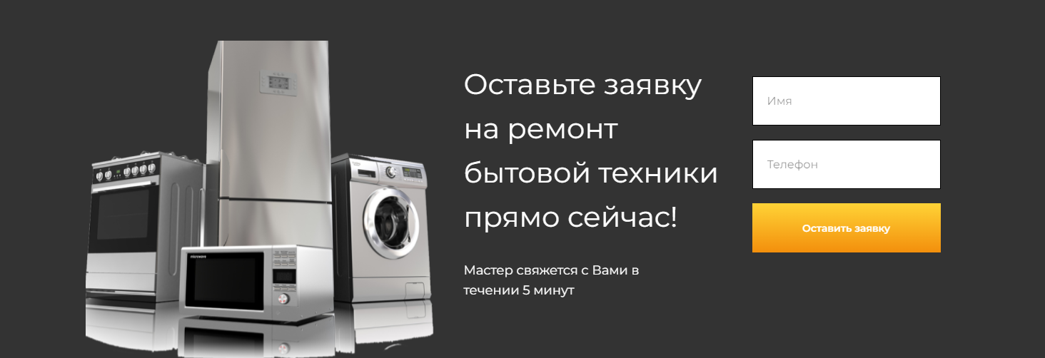 1. Призыв к действию Пример: Ремонт бытовой техники в день обращения